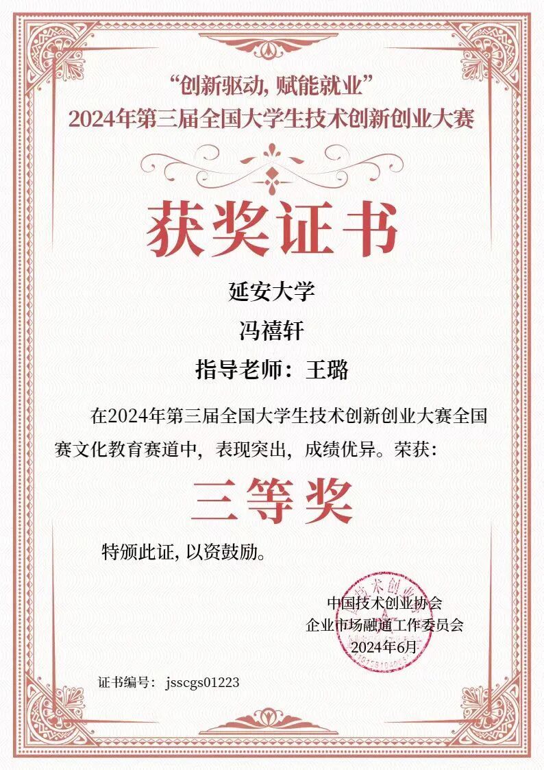 4月1日—6月15日,来自全国各大院校的700余组团队参加了“创新驱动,赋能就业”2024年第三届全国老员工技术创新创业大赛。大赛分为信息技术、AI大模型应用、医疗健康、乡村振兴、文化教育、现代服务业、智能制造七个赛道。所有参赛团队经过一年左右的认真准备,经历了巧妙富有创意的构思,认真研究商业模式和市场调研,商业计划书和PPT汇报的反复打磨,最终将满意的作品呈现在评委眼前。其中,公司临床医学专业冯禧轩团队(张鹏辉 梁薛峰 杨茹楠 赵丹)在公司王璐教授的指导下,在文化教育赛道中获得省级一等奖,顺利晋级国赛,并获得国家级三等奖。