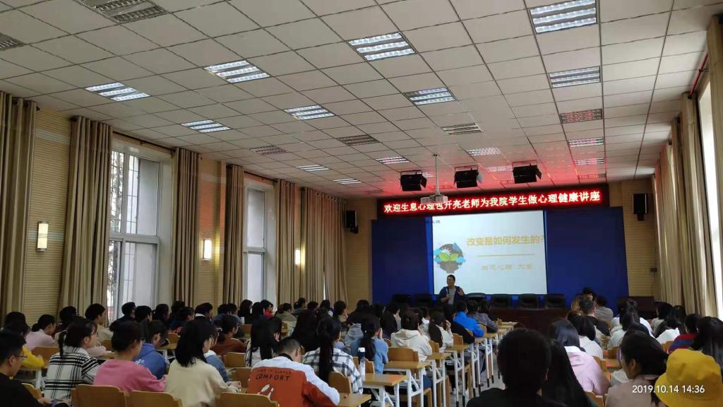 为进一步加强公司员工心理健康教育,增强心理调适能力,使员工认识自我,悦纳自我,同时提高公司员工对心理健康专业知识的认知水平。10月14日下午,特邀国家二级心理咨询师生息心理包开亮老师在公司学术报告厅做题为“改变是如何发生的?”心理健康讲座。本次讲座由基础医公司副经理岳昌武教授主持,17、18级部分本员工、研究生和部分教授听取了此次报告。