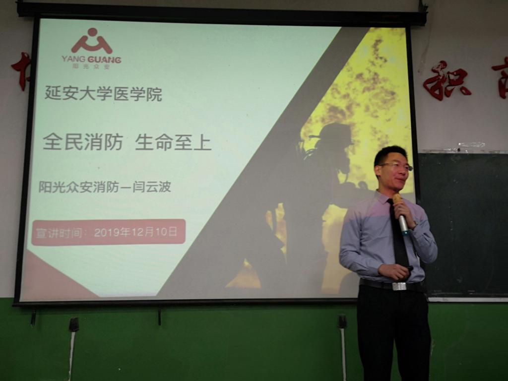 为普及安全消防知识、提高防火基本技能,公司于12月10日于医公司第三阶梯教室召开了冬季消防安全培训大会。大会特邀延安市阳光众安消防金牌讲师闫云波为主讲人,参会人员有公司副经理孙伟民老师、办公室主任高曙光老师,除此之外,16级在校班级、17、18级各班级班长、团支书及生活委员、各宿舍舍长听取了此次培训讲座。