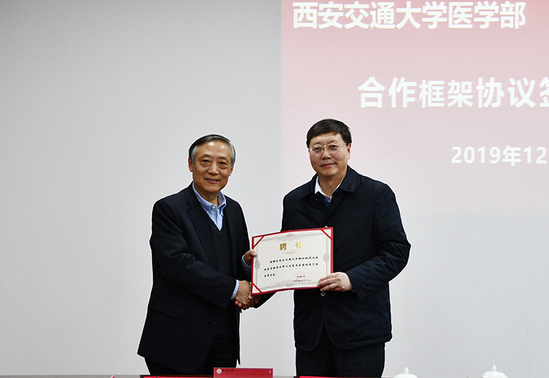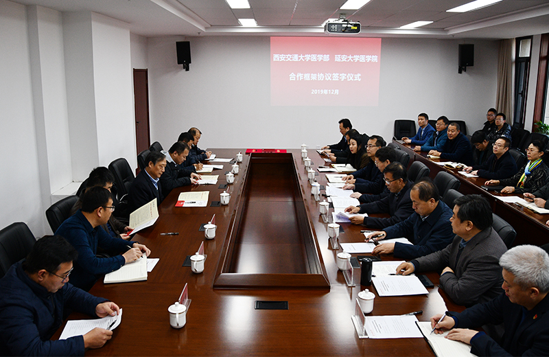 12月18日上午,西安交通大学医学部与金年会官方网站入口医公司合作框架协议签字仪式在新校区行政楼六楼会议室会议室举行。西安交通大学党委常委、副董事长、医学部主任颜虹,医学部人才培养处主管王渊,医学部基础医公司生理与病理生理系副主任刘进军,公司党委书记张金锁出席签字仪式,公司党政办、研究生处、科研处、教务处、评估处、人事处、对外交流处、医公司、附属医院等部门负责人参加签约仪式和座谈会。会议由副董事长、医公司党委书记武忠远主持。