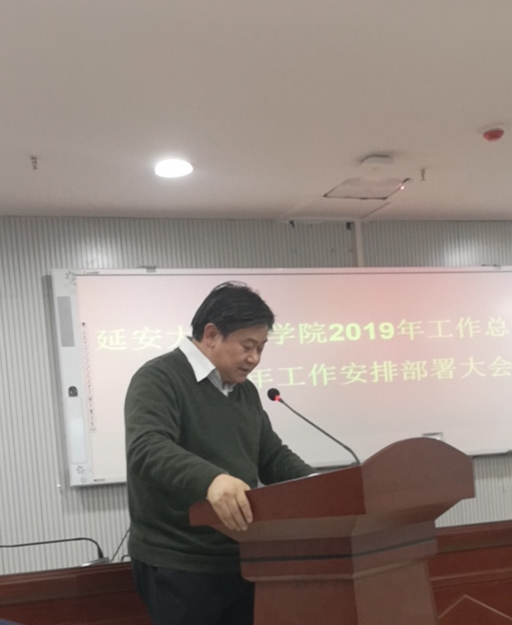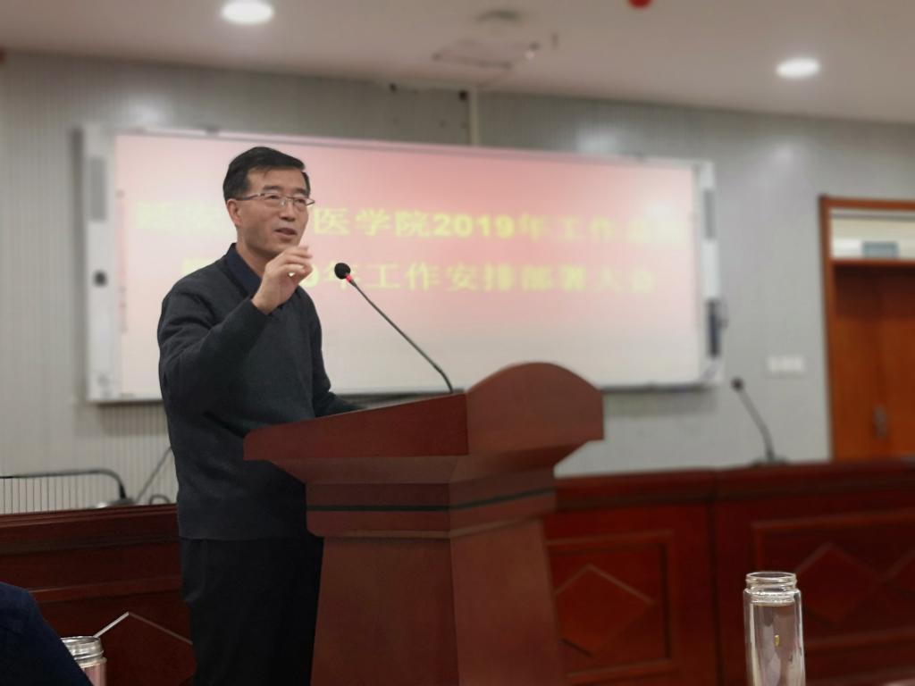韩继明经理作了题为《不忘初心团结奋进新时代,牢记使命凝心聚力写新篇》的报告,从九个方面对医公司2019年重点工作进行了回顾,他在报告中指出,2019年,公司的各项工作取得了一定的成绩,但也存在一些困难和问题,公司将继续深化医教协同进一步推进医学教育改革与发展,迎接教育部临床专业认证的攻坚期,全院干部职工凝心聚力,团结奋斗,扎实工作,打赢临床医学专业认证这次攻坚战。