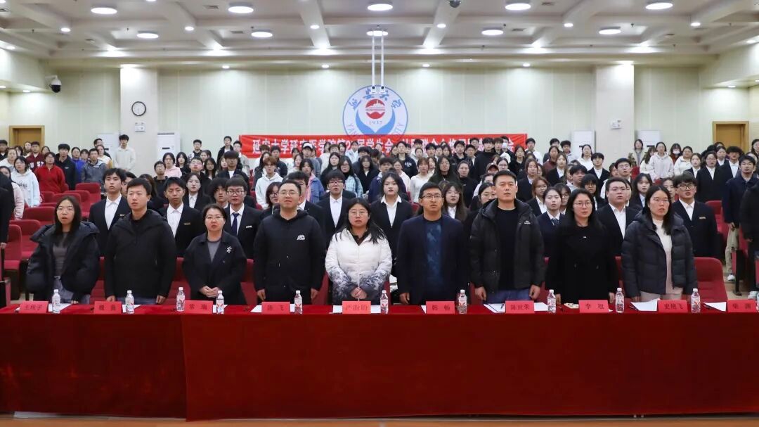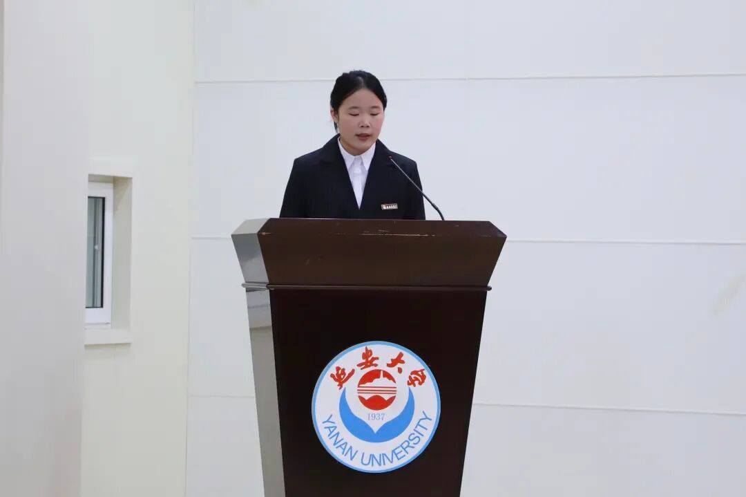 王聚厚同学向领导老师、上一届学长学姐及同学们表达诚挚感谢,回顾了员工会过往开展的各类特色活动与传承的红色基因、医者使命,明确新一届员工会将围绕“服务、团结、创新、担当”,通过牢筑服务桥、打造成长台、拧紧团结绳开展工作,承诺将以初心实干践行使命,续写员工会工作崭新篇章,让红色基与医者初心传承闪耀。