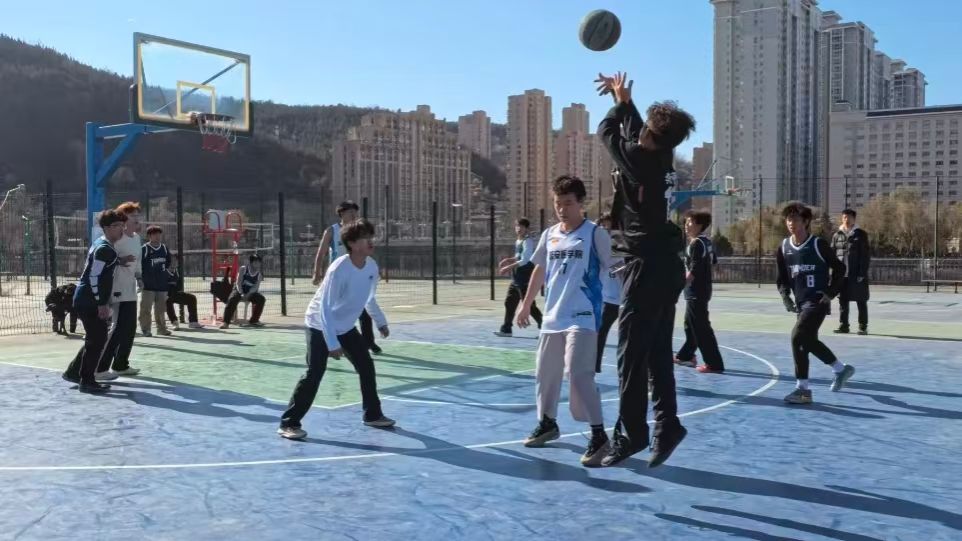 篮球击地的“砰砰”声与观众的呐喊助威声交织,如秋日浪潮般席卷赛场,为比赛注入了无限激情与活力。